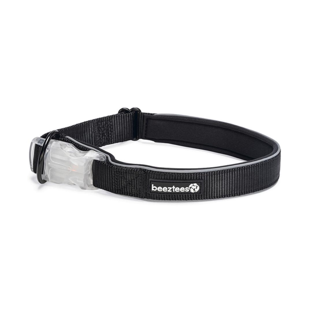 Prettige, reflecterende halsband met ademende neopreen voering en ledverlichting op de kliksluiting.