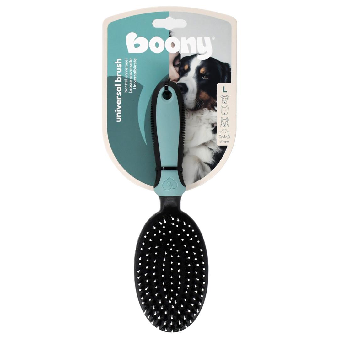Deze Boony universeel borstel is ontworpen voor het verwijderen van losse en dode haren en vuil, en is geschikt voor alle hondenrassen, ongeacht de vachtsoort.