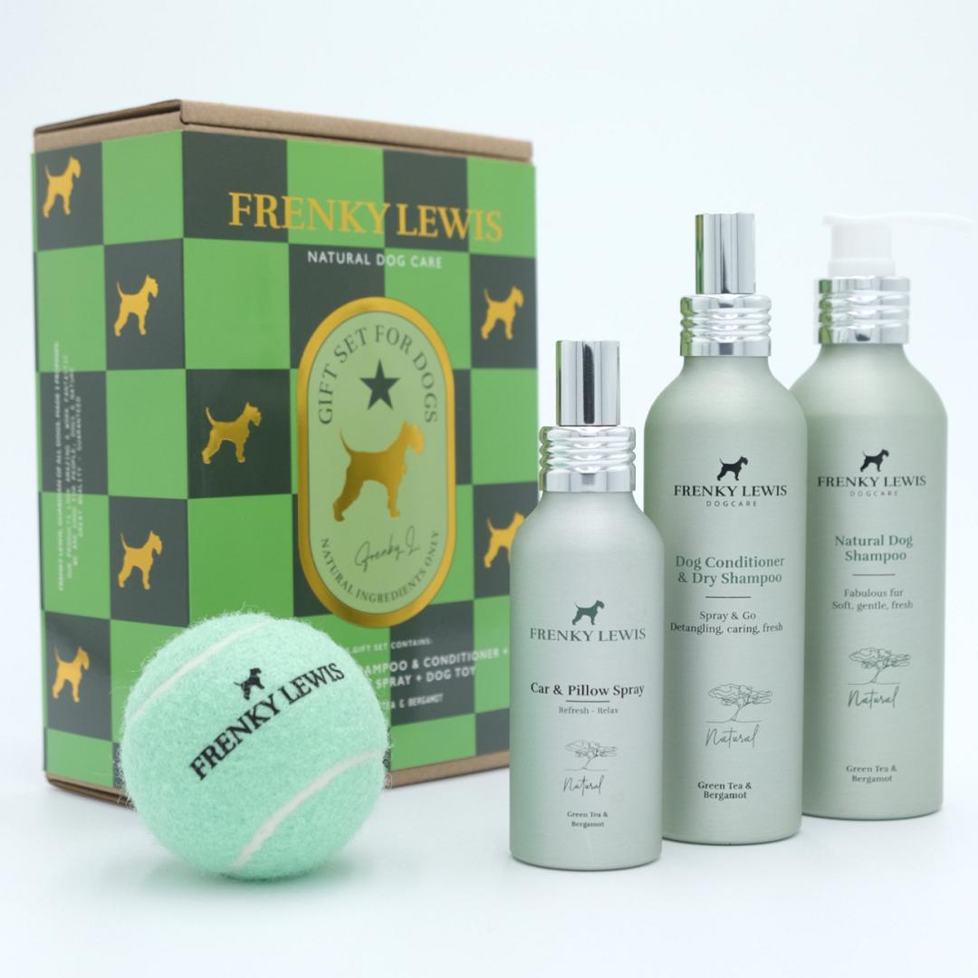 De Frenky Lewis Christmas gift set Noble Woods is het perfecte cadeau om je trouwe viervoeter te verwennen en te laten stralen tijdens de feestdagen. Met verzorgende producten, een heerlijk geurende spray en een leuk speeltje, geef je niet alleen iets moois, maar ook een moment van aandacht en liefde.