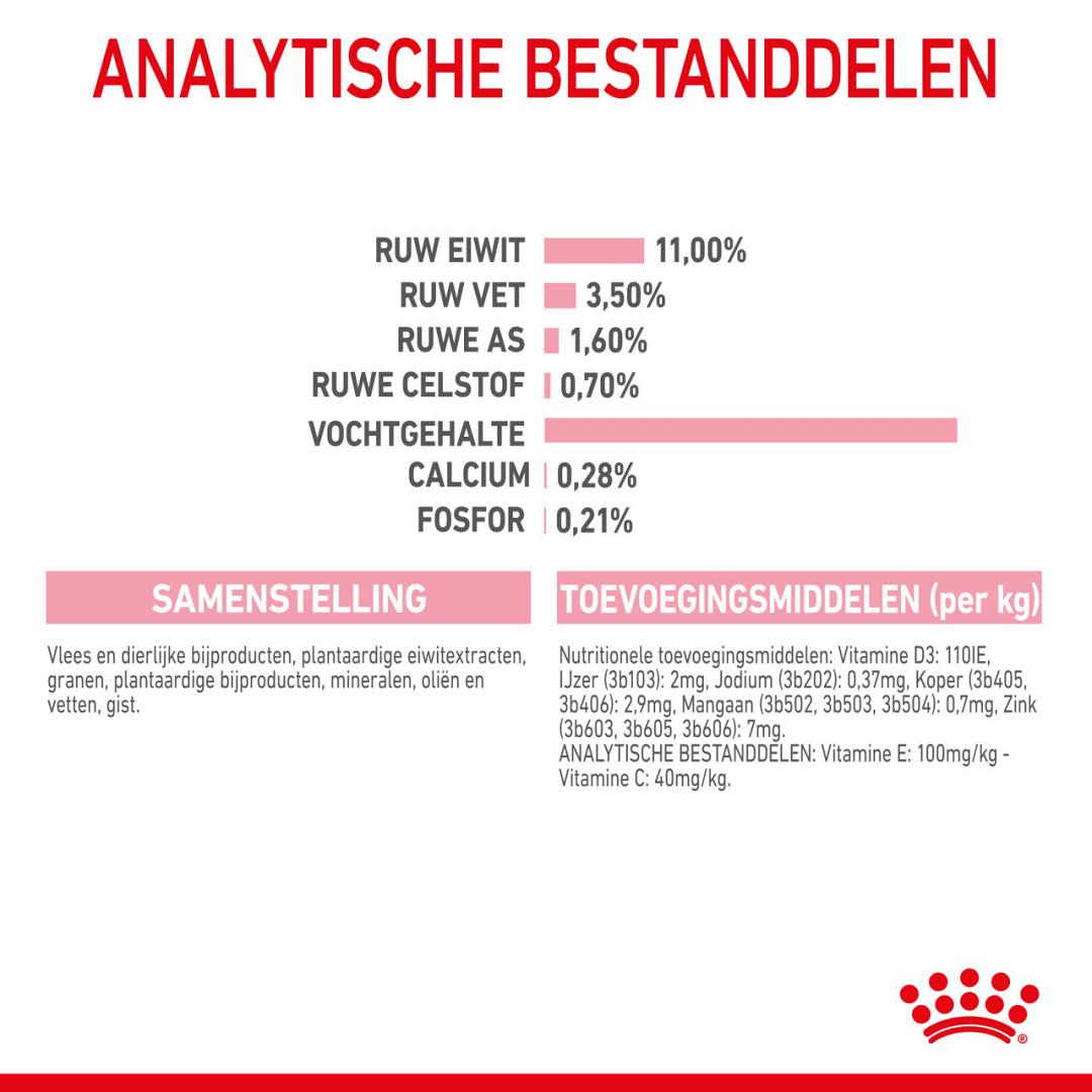 Royal Canin kattenvoer Kitten Sterilised Gravy is een volledige en uitgebalanceerde kattenvoeding voor gesteriliseerde/gecastreerde kittens (van 6 tot 12 maanden). Sterilisatie of castratie veroorzaakt hormoonveranderingen bij je kitten, waardoor het gedrag en de behoeften kunnen veranderen. Je kitten heeft minder calorieën nodig en kan van dezelfde voeding ineens dikker worden. Met een speciale voeding blijft je kitten op een gezond gewicht.
