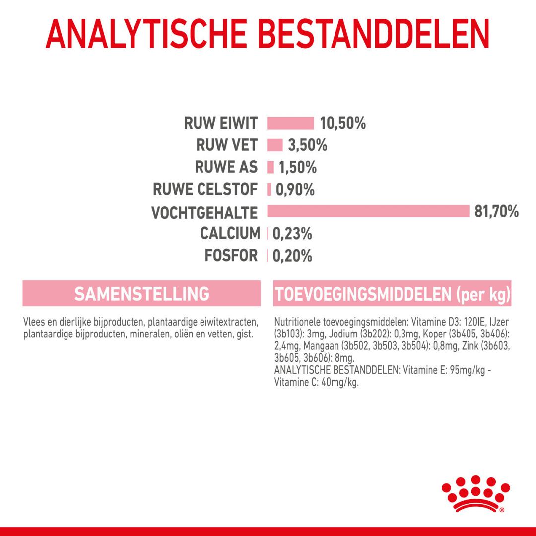 Royal Canin kattenvoer Kitten Sterilised Jelly is een volledige en uitgebalanceerde kattenvoeding voor gesteriliseerde/gecastreerde kittens (van 6 tot 12 maanden). Sterilisatie of castratie veroorzaakt hormoonveranderingen bij je kitten, waardoor het gedrag en de behoeften kunnen veranderen. Je kitten heeft minder calorieën nodig en kan van dezelfde voeding ineens dikker worden. Met een speciale voeding blijft je kitten op een gezond gewicht.