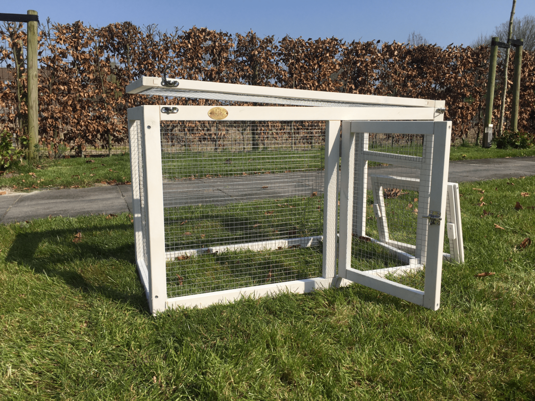 De ren heeft een deurtje en een dak dat open gemaakt kan worden. Zo kunt u makkelijk bij uw konijn komen. Ook heeft deze ren een paneel dat u gemakkelijk kunt verwijderen. Zo kunt u deze ren eenvoudig koppelen aan uw dierenverblijf.