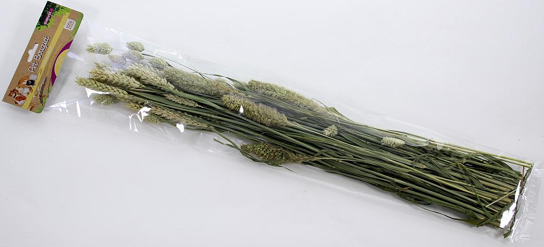 De gevarierde mix van granen, grassen en kruiden kun je in het verblijf leggen of hangen. Het staat niet alleen mooi, maar het voorziet het dier in zijn natuurlijke knaagbehoefte en gaat bovendien verveling tegen.