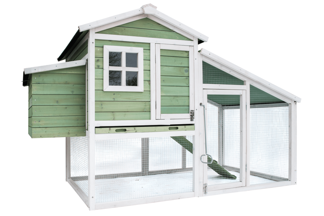 Het dierenverblijf William is een ruim buitenhok met een groot nachthok en een uitschuifbare lade. De grote ren geeft kippen en konijnen veel bewegingsruimte en is eenvoudig toegankelijk. Afm. 192 x 90 x 116 cm.